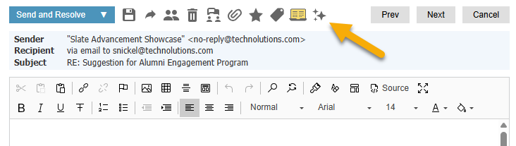 Click the Slate AI icon at the bottom right of the Send Message popup OR